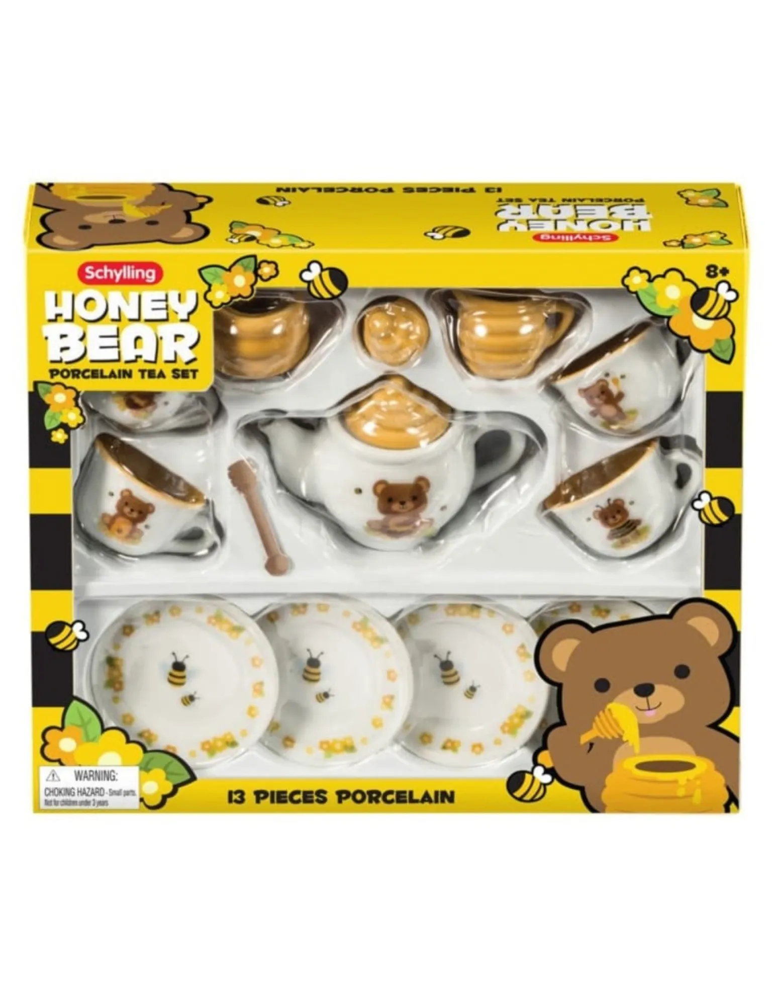 Invite Honey Bear And The Busy Bees To Have A Tea Party! It’Ll Bee Real Sweet! 14 Piece Porcelain Tea Set With Honey Bear And Bee Decorations.
