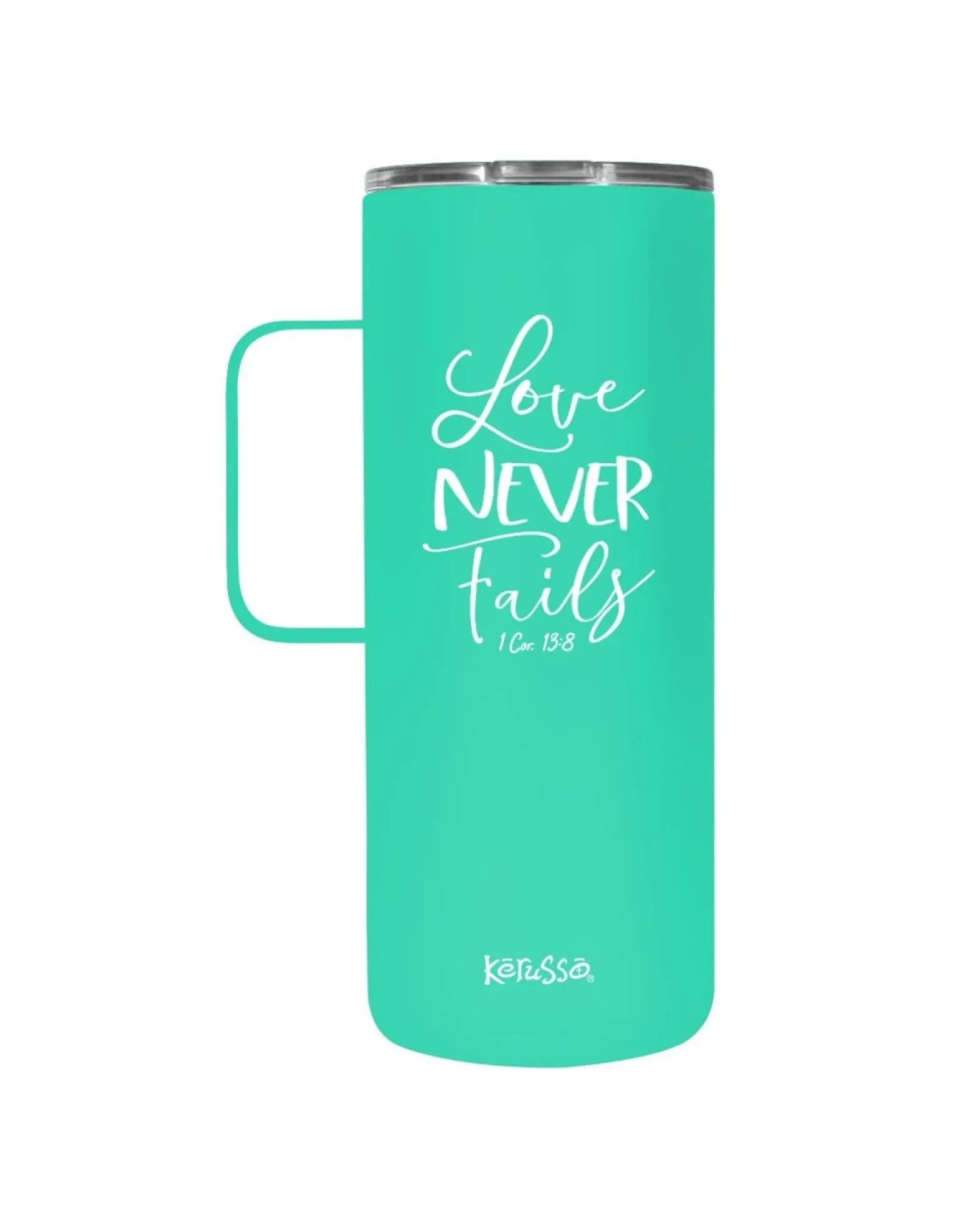 Take Comfort In The Reassurance Of God’s Love For You When You Carry This Pretty “Love Never Fails” Kerusso® 22 Oz. Stainless Steel Mug With Handle In Mint Green. Loving Others Like Jesus Is A Beautiful Way To Live Life, And As Believers, We Know God’s Love For Us Makes Every Day Worthwhile. This Contemporary Handled Mug Is Designed To Fit Most Car Cup Holders, Is Sweat-Free, And Keeps Drinks Piping Hot Or Ice-Cold For Hours. It’s A Practical Vessel For Home, Work, Or The Car.