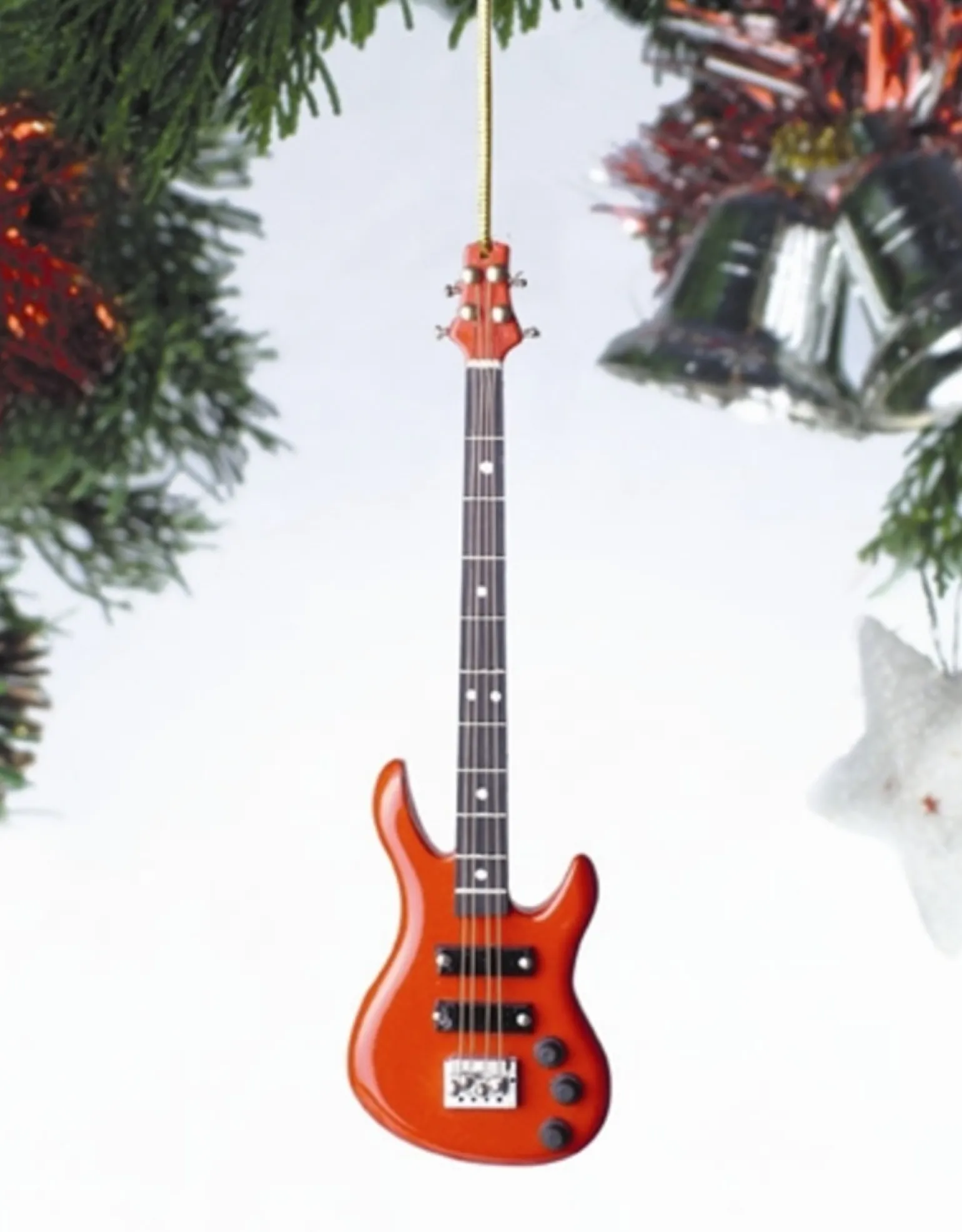 Bass Guitar Ornament With Red Gift Box – A Beautiful, Detailed Miniature, And The Perfect Christmas Gift For The Musician In Your Life.